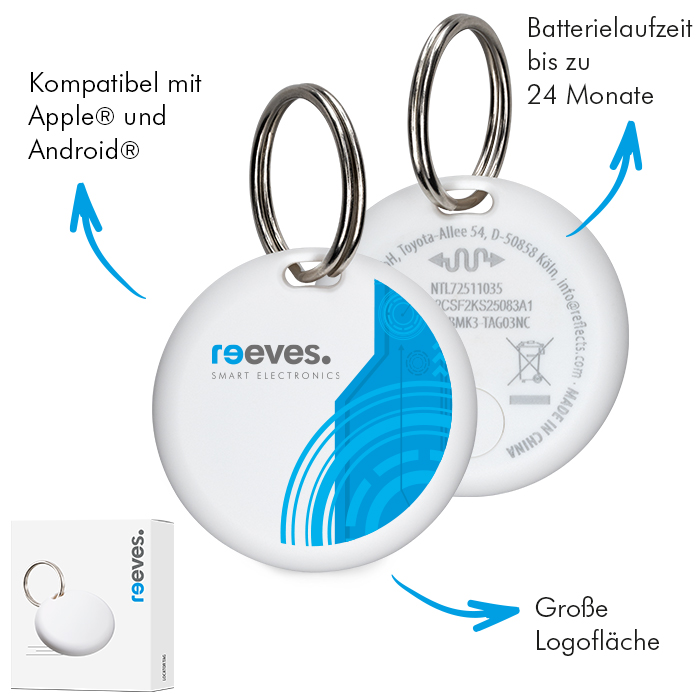 Der NEONELLA überzeugt im Alltag mit bis zu 24 Monaten Batterielaufzeit, schnellem Reset für einen optionalen Netzwerkwechsel und einer hochwertigen Sleeve-Verpackung. In elegantem Weiß bietet er eine großzügige Fläche für Ihre Markenbotschaft – veredelbar per Tampon- und UV-Druck. Schlüssel, Taschen, Gepäck oder Fahrrad: Was wichtig ist, bleibt künftig zuverlässig auffindbar.